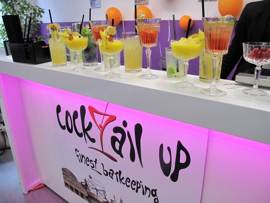Wir wissen, dass Sie bei besonderen Anlässen wie Messeauftritten, Firmenjubiläen, Produktpräsentationen und Neueröffnungen nach exklusiven Darbietungen suchen. Diese Exklusivität und Extraklasse wollen wir Ihnen mit unserem Knowhow und vielen Möglichkeiten bieten. Wenn Sie nach etwas Besonderem suchen, sprechen Sie uns doch gerne auf ein gewünschtes Highlight an! Durch Trockeneiseffekte, Zesten-Branding mit Ihrem Logo oder einer Wortmarke und individuelle CI-Cocktails mit den Farben Ihres Unternehmens bleiben keine Wünsche offen. Wir lassen Ihr Ereignis unvergesslich werden und setzen für Sie mit unseren ausgewählten Premiumspirituosen klare Statements. Heben Sie die Moral in der Firma und verbessern Sie die Mitarbeitersolidarität.